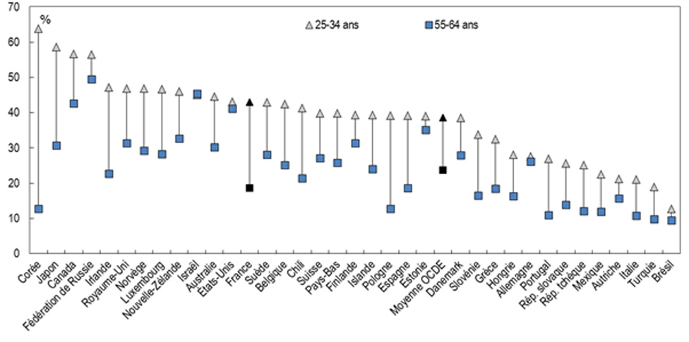 professionnelle (27 % en moyenne OCDE), contre 48 % des 25-34